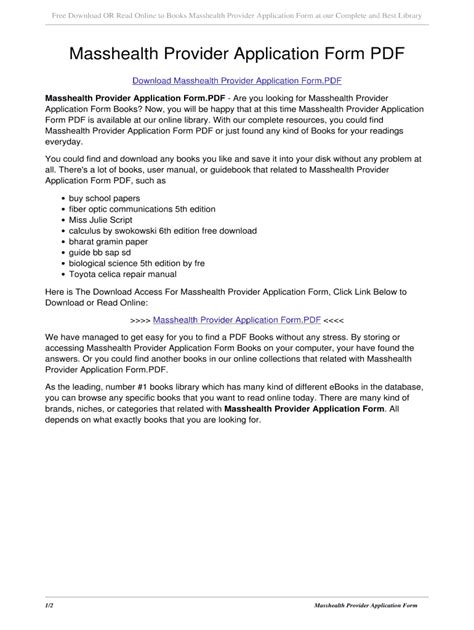 Read MASSHEALTH PROVIDER APPLICATION FORM Reader Gutenberg